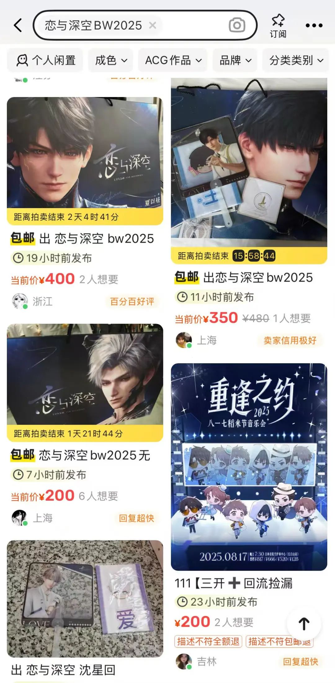 闲鱼上拍卖《恋与深空》BW2025周边丨来自:闲鱼