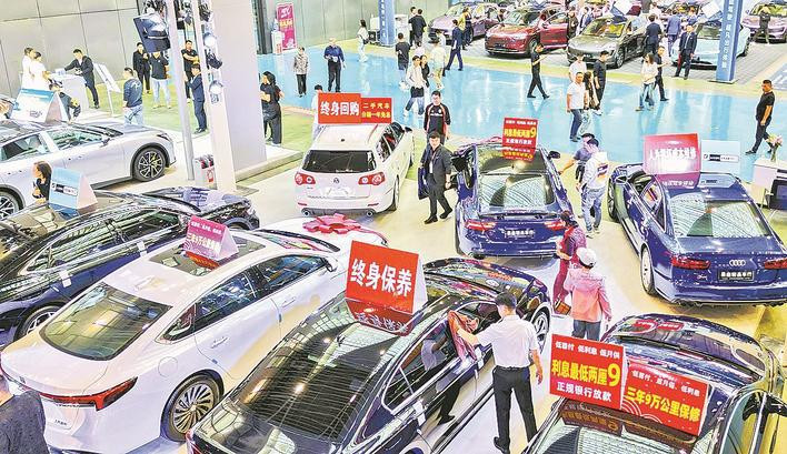 顾客在2025第三十一届山东东营(春季)汽车博览会上参观咨询(无人机照片)。新华社发